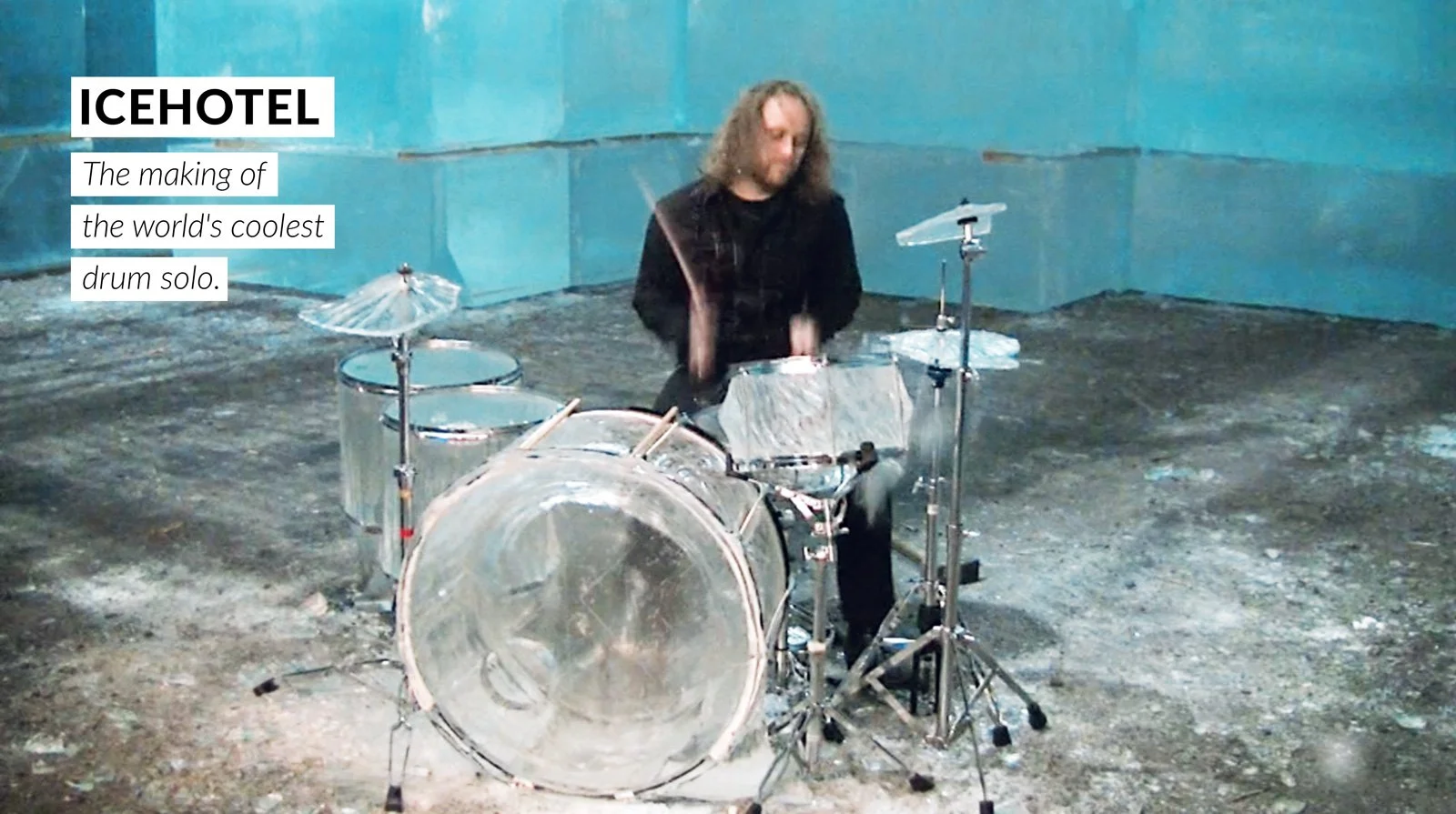 The entrepreneurs behind the ice hotel in Jukkasjärvi have made the coldest and darkest area of Lapland into an international tourist destination. The hotel is rebuilt every year using the clear ice from Torne river. The builders are the world’s best ice craftsmen, and true pioneers. Our campaign posed a great challenge to them. Could they build an entire ice drum set you actually could play on?